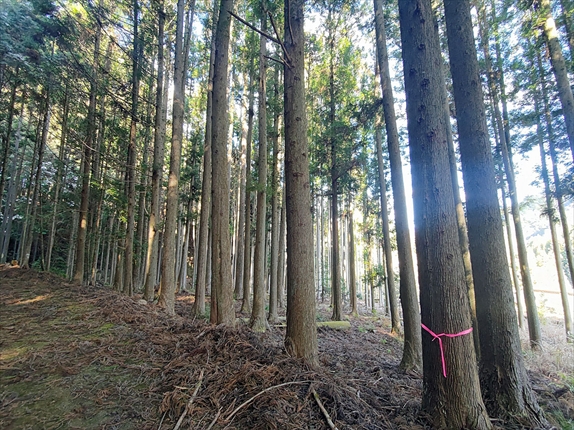 静かな集落の山林